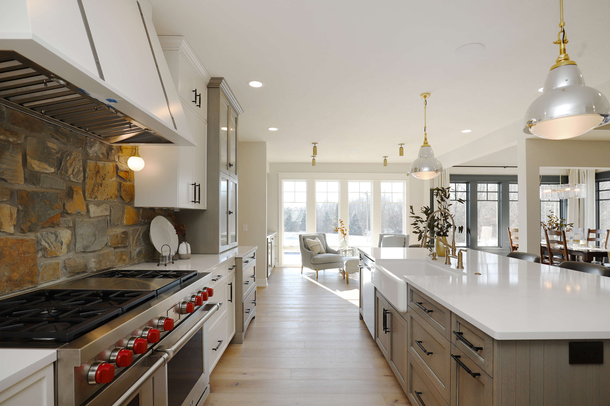 Gathering spaces were equally important. We expanded the kitchen and dining area to allow for a larger island, more cooking space, and comfortable room for entertaining.