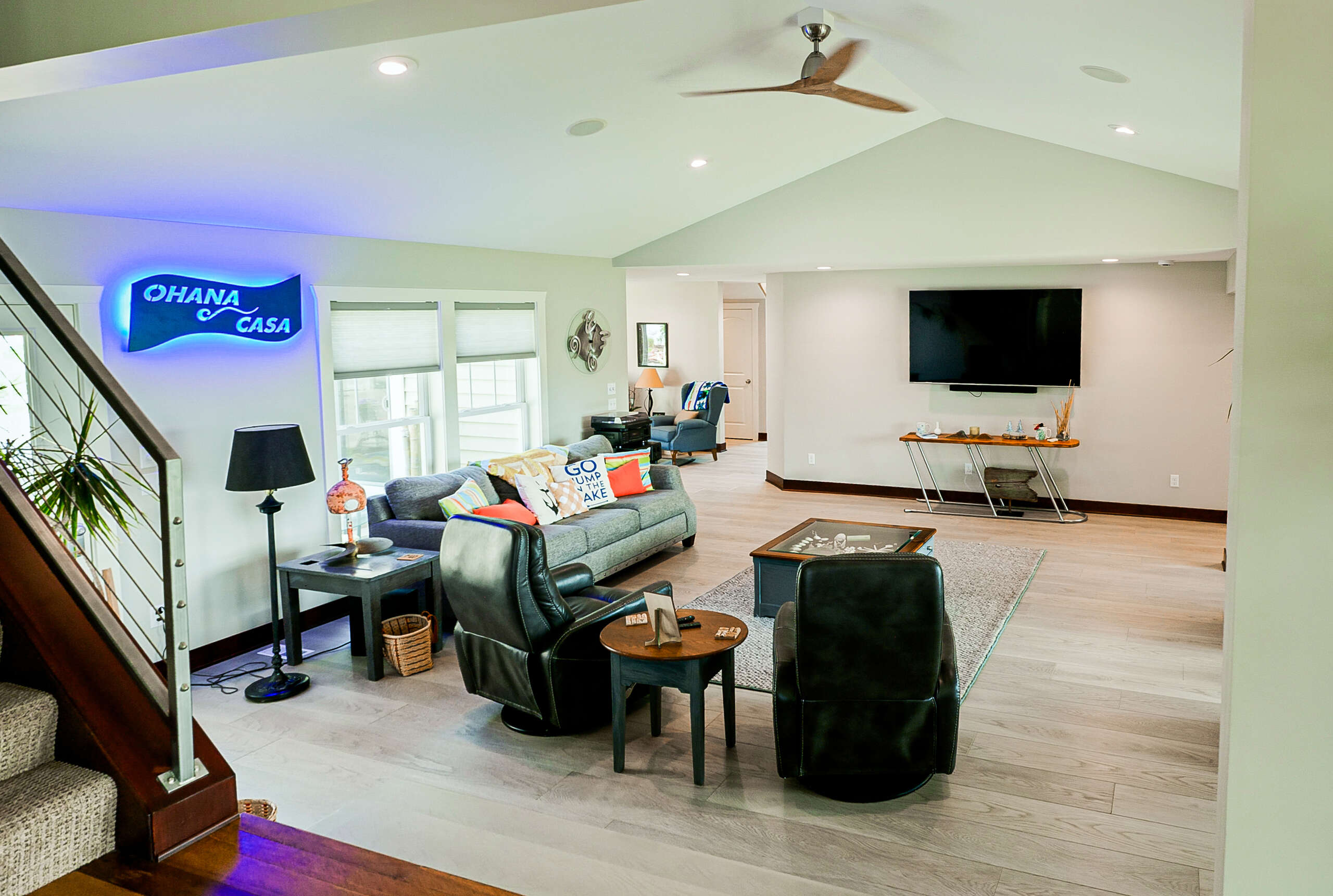 The result is more than just the combination of two houses — it’s a fully realized, unified home. The family now enjoys ample space for entertaining, daily living, and memorable moments by the lake with friends and loved ones.